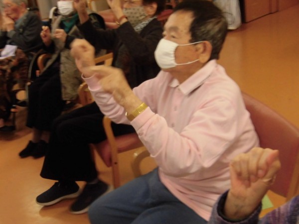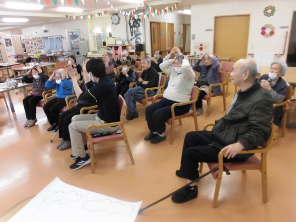 若干ずれなどもありましたが、皆様しっかりと体操を行って行きました。当初ご利用者様からは「これで体操できるのかな?」と言われましたが、時間が経つにつれてその考え方がすっかりなくなり楽しくノビノビとした体操ができたそうです♪