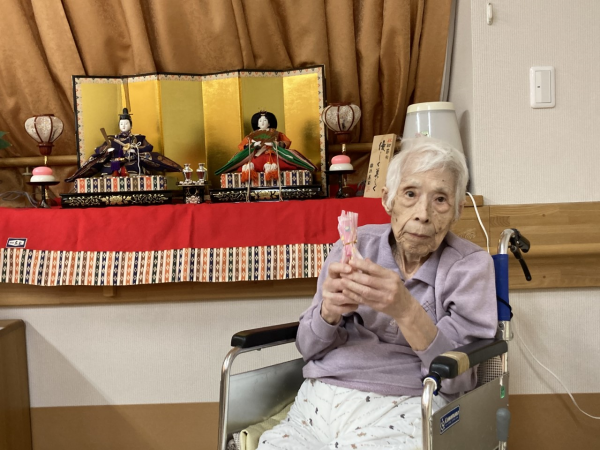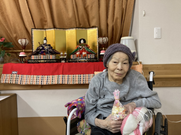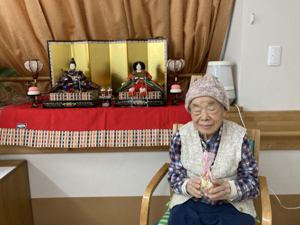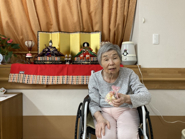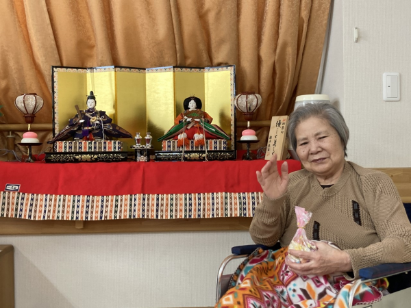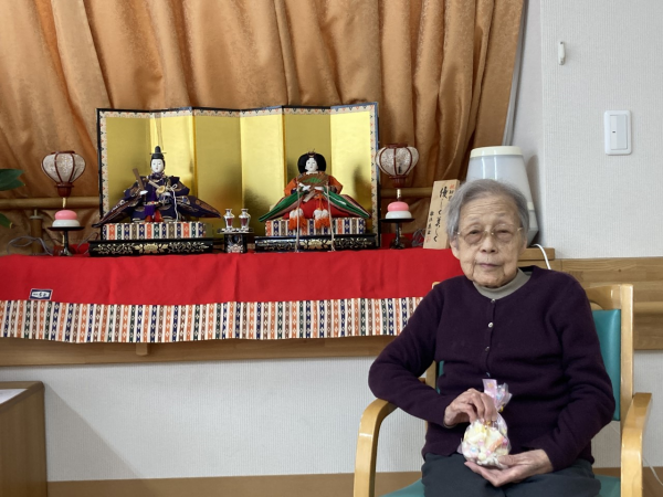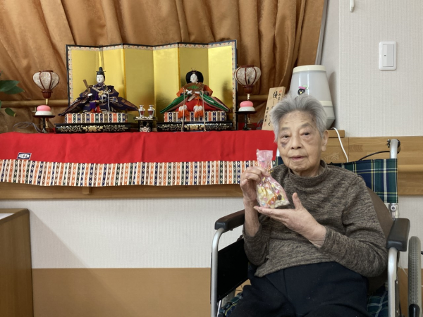 3月3日に職員の手作りお菓子包みとおひな様でお写真を撮りました( *´艸`)