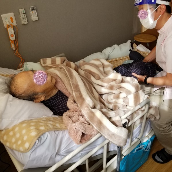 こんにちは。写真のご入居様には関節可動域を広げる施術をメインに実施しております