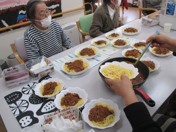 手作りミートスパゲッティーの完成でーす。うちの所長はおなかすきすぎて 「とっても美味しそうなミートスカベッティーですね」と・・・皆様にスパゲッティーよ!と突っ込まれていました。