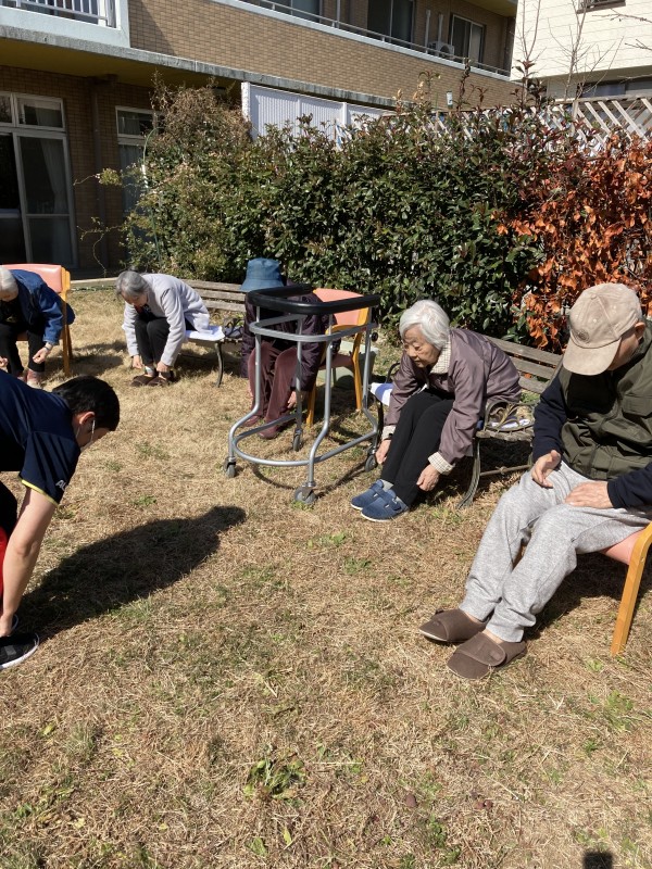 種芋を植えてひと段落ついたあとは、外気浴をしながら軽いストレッチを行いました♪
