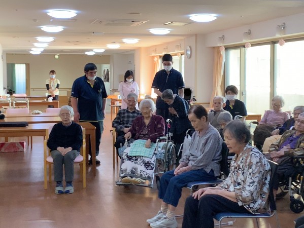 入居者様とスタッフで、追悼の意を表し、黙祷を捧げました。