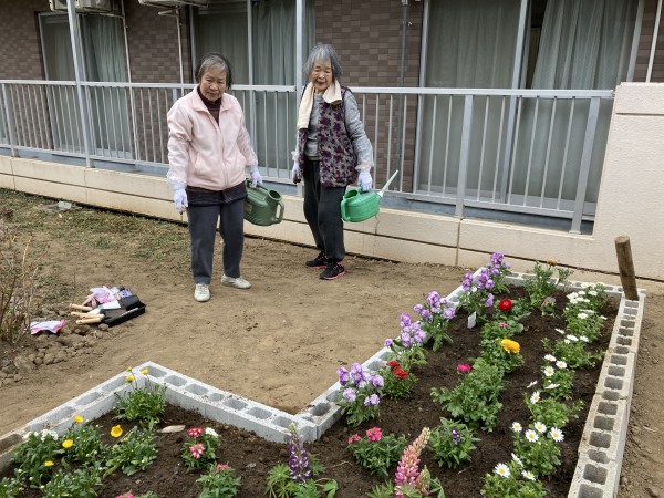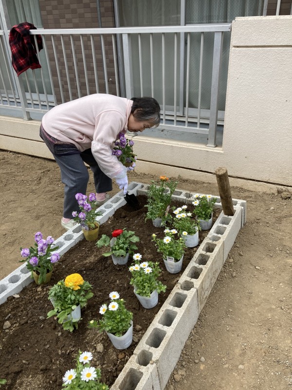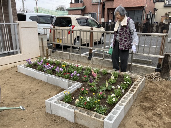 沢山のお花をきれいに植え込みました。「庭仕事は楽しいわ」と仰って下さいました。お疲れ様でした。