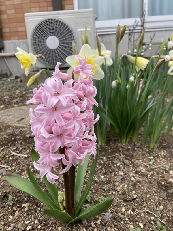 松伏のお庭に,水仙やヒヤシンスが見ごろになっています。