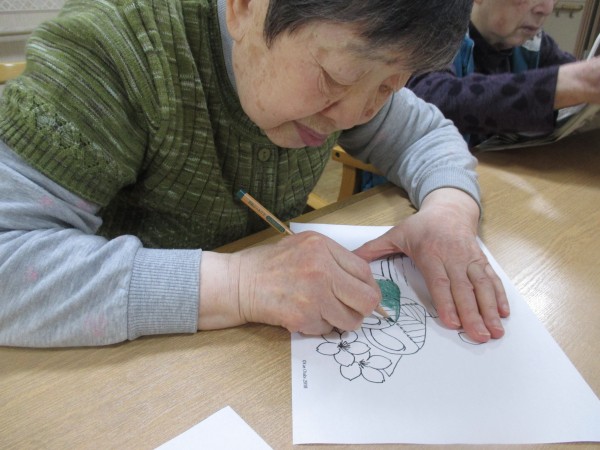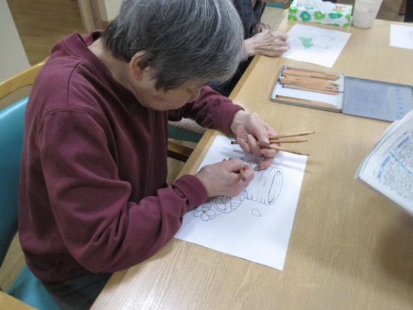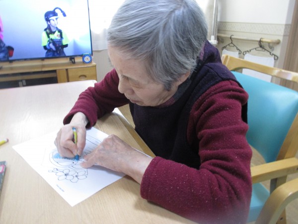 レクリエーションで行った塗り絵の様子をお伝えします。