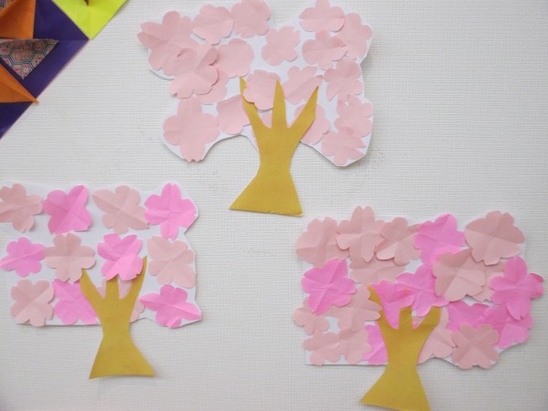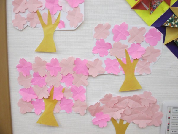 レクリエーションのご様子「桜????の張り絵」をアップさせて頂きます。 (((o(*゚▽゚*)o)))