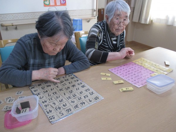 漢字や数字のパズルをしながら、「なんて読むのかしら」「どこにあるのかな」とお話しながら楽しまれていました。