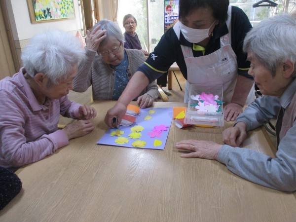 春の様子の壁飾り作りを行いました。