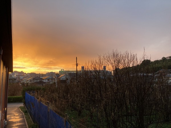 雨は夜勤担当が出勤する夕方5時前には小雨になりました。写真はその時のお空の様子です。