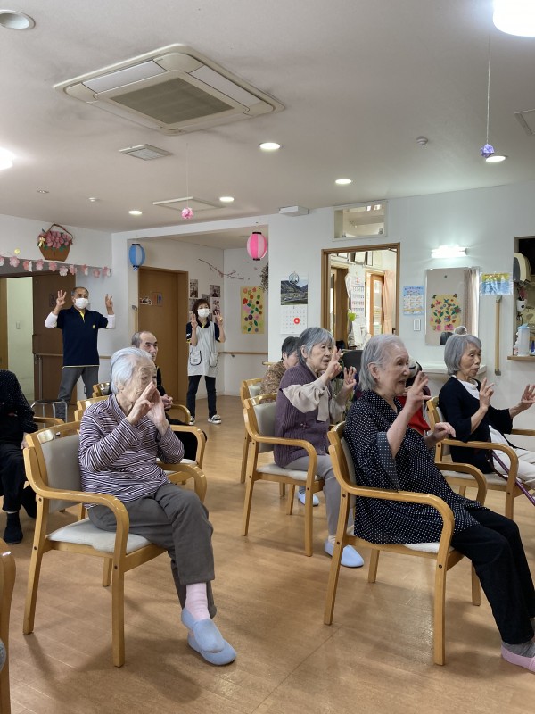 今回は皆さま慣れてこられたようで、元気よく音楽にあわせて楽しく身体を動かしました。