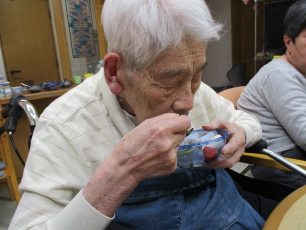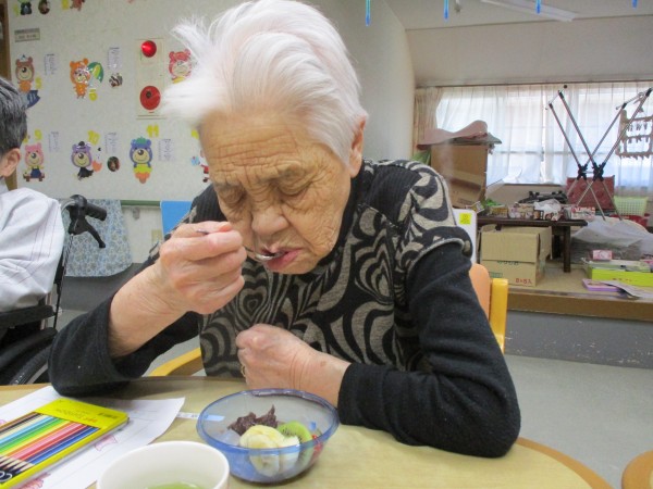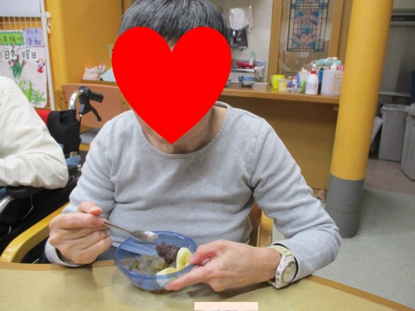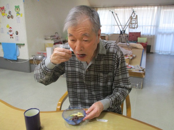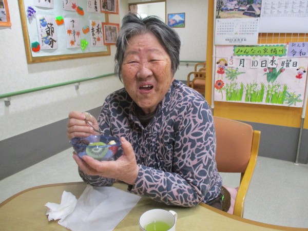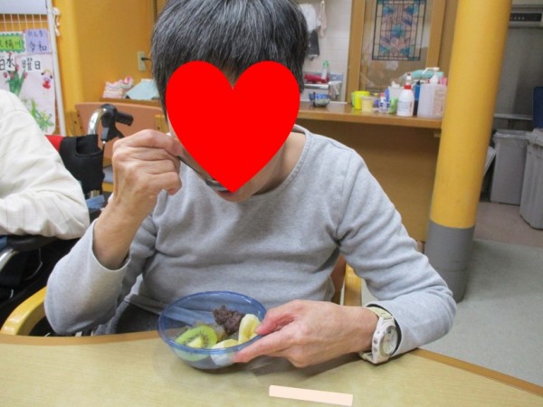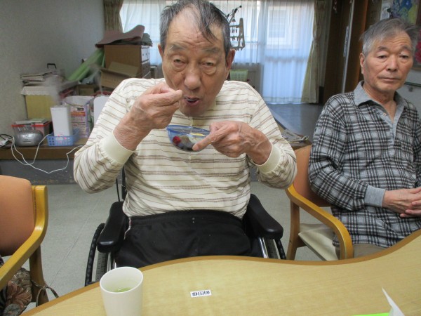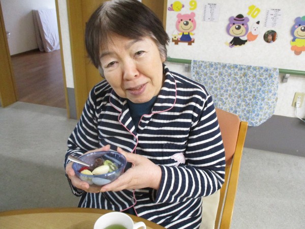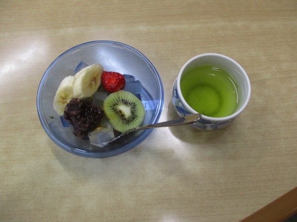 本日のメニューは1階の料理上手な職員さんが作ってくれた「あんみつ」です!