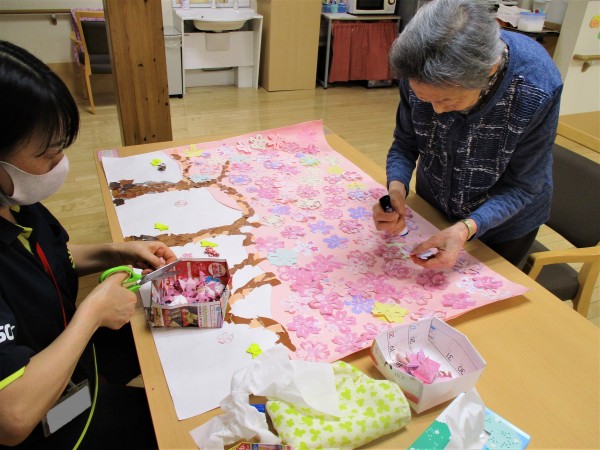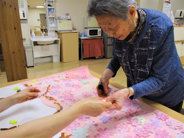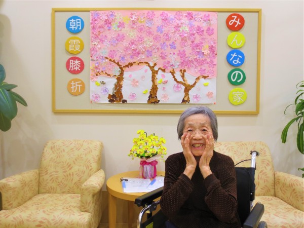 みんなの家・朝霞膝折玄関ホールにいち早く満開の桜が咲きました。