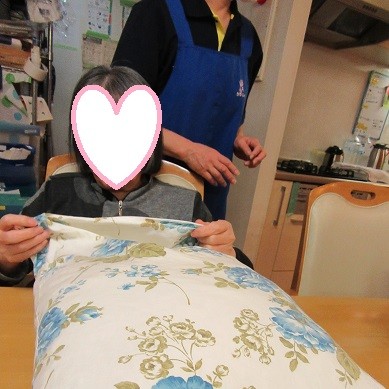 洗い終わった枕カバーをつけます。