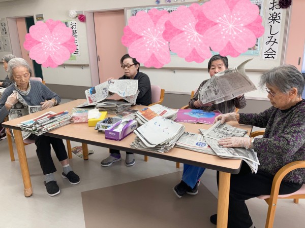 職員が使う新聞紙を畳んで下さっています。