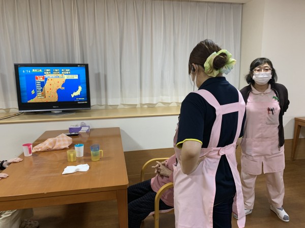 入居者様の安否確認をし、一緒に速報を観ます。