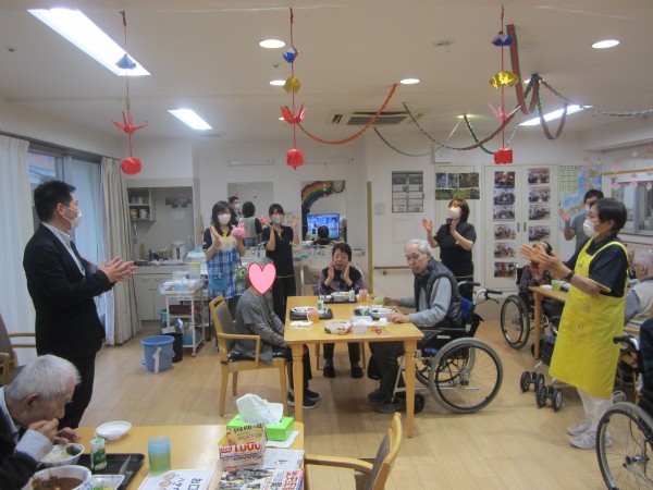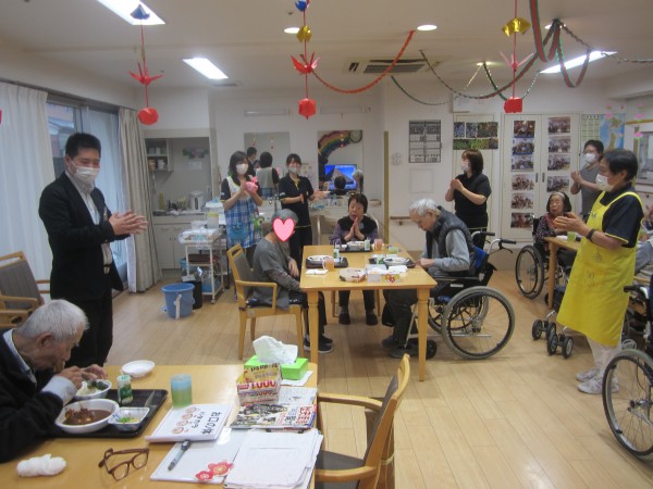 周りの利用者様も一緒にハッピーバースデーを歌い楽しいひとときを過ごす事が出来ました。
