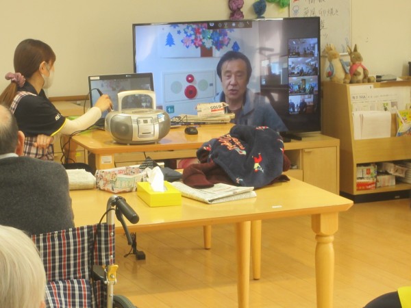 他の施設の様子も画面に映り他施設のご利用者様も笑顔で楽しそうに参加れれていました\(^o^)/