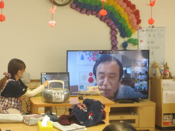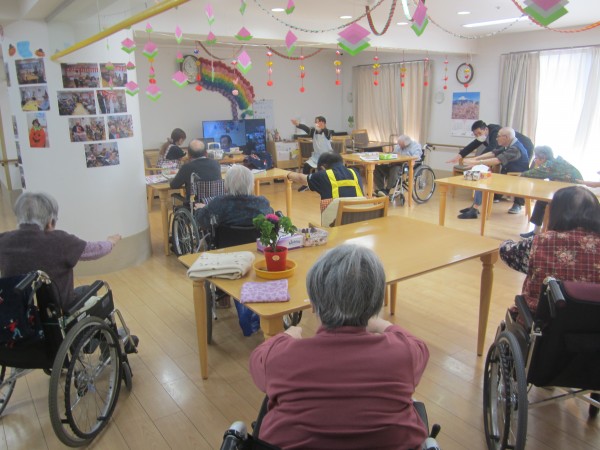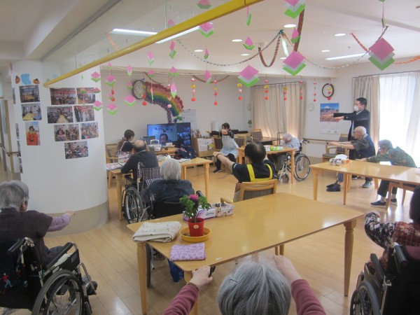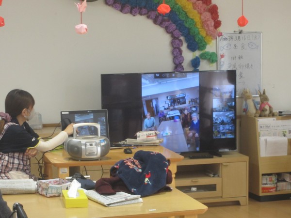 他の施設の様子も画面に映り他施設のご利用者様も笑顔で楽しそうに参加れれていました\(^o^)/