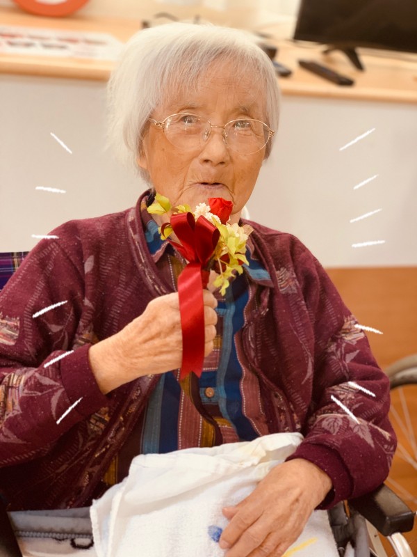 原ナースより、お祝いの言葉と、"祝福"の意味が込められた手作りの薔薇のブーケが贈られます。。。!