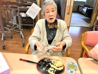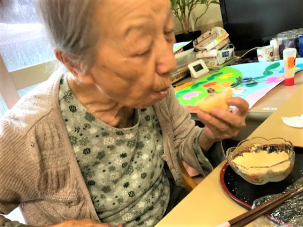 普段…手作りおやつは、自立の方にお手伝いして頂いていますが、今回は全員の方に(ミキサー食は別です)ご自身で作って頂きました。