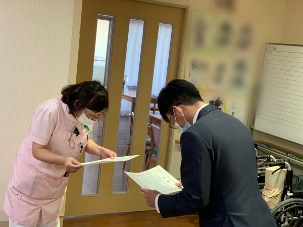 先日、すこや家西尾久のブログの表彰状を受け取ってくださった