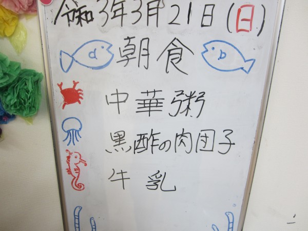 介護付有料老人ホームみんな家三橋6丁目の朝食は令和3年3月21日日曜日