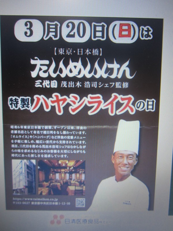 ご利用者様はかの有名な日本橋たいめいけんは昭和6年創業の洋食屋です。
