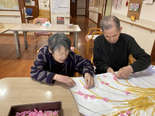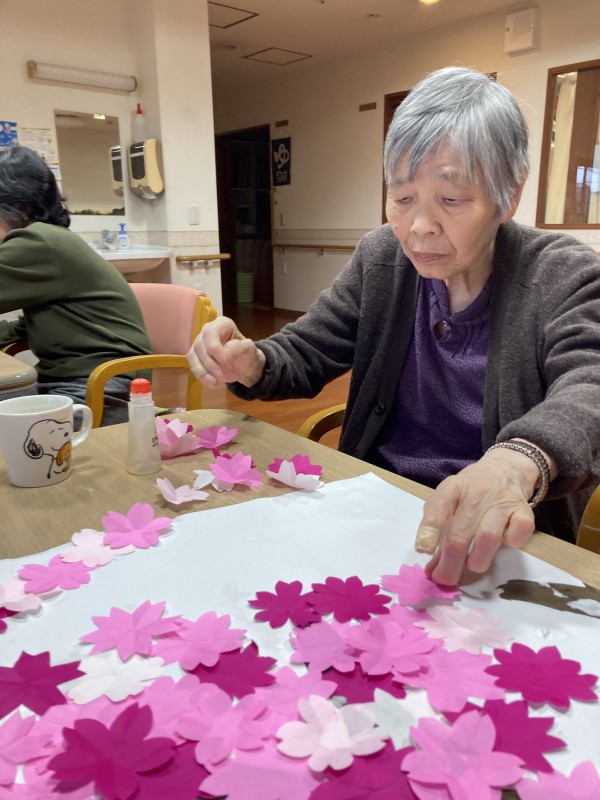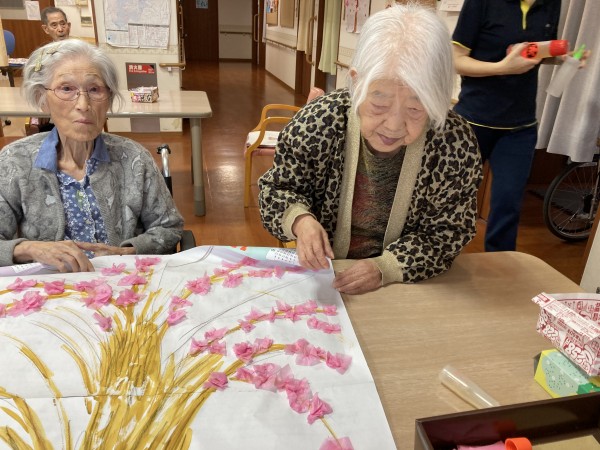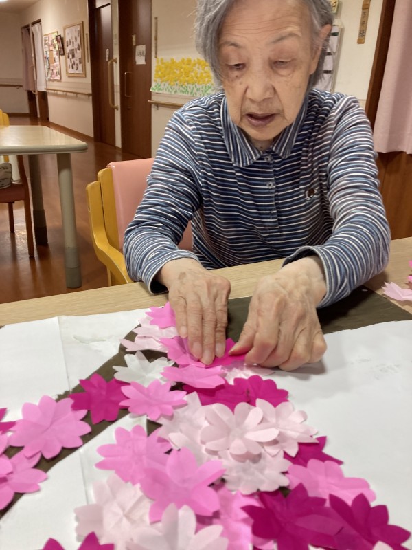 どんな作品が出来上がるか、それぞれ利用者様もこだわり様子伺いしながら花びらを貼り付けされていました。
