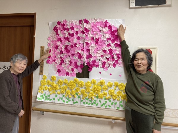 壁画を作成しながらも「花見弁当が食べたい!」と会話をされてました。
