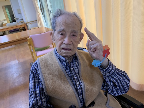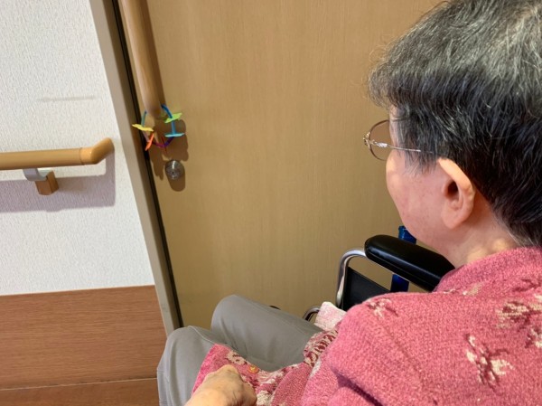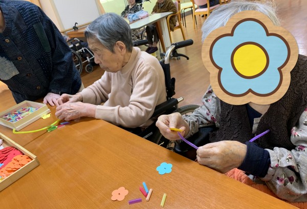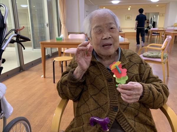 ご自分で作られた花輪っかを、嬉しそうに見ていらっしゃいました。