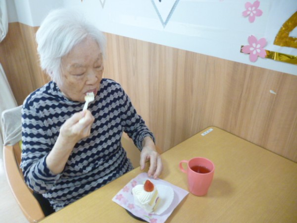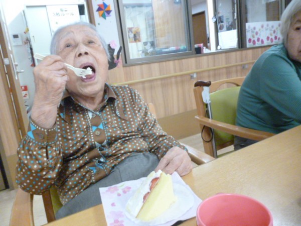 当日はご家族様よりお誕生日ケーキが届き、皆様大変喜ばれ、あっと言う間に召し上がっておりました。