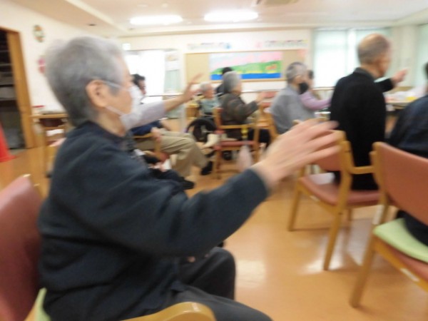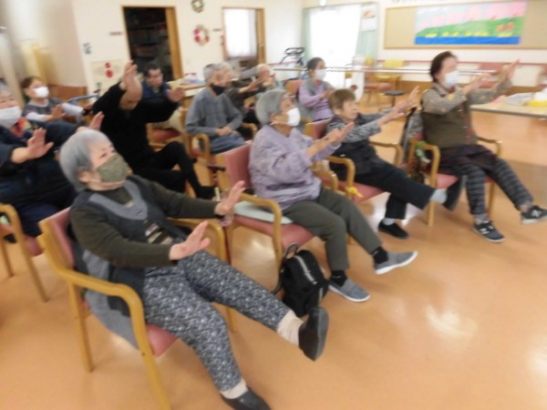 掛け声とともに手足を動かしながら、今回はBGMを入れてリズムよく動きましたー