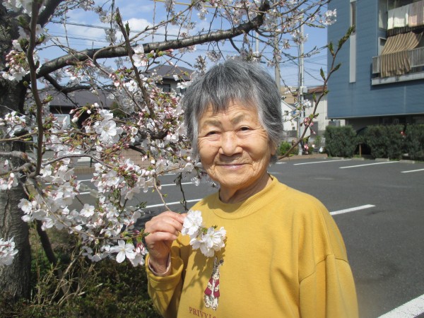 皆様、桜の花を見て「きれいだね」、「咲いてきたね」と触ったり、見とれていました。