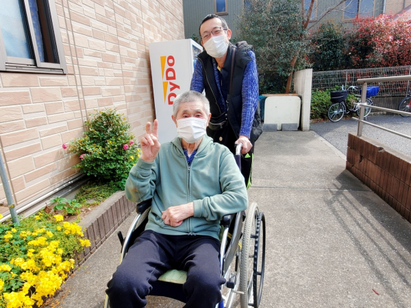 帰宅後、グループホームみんなの家・川崎久地の玄関前でパチリ✿