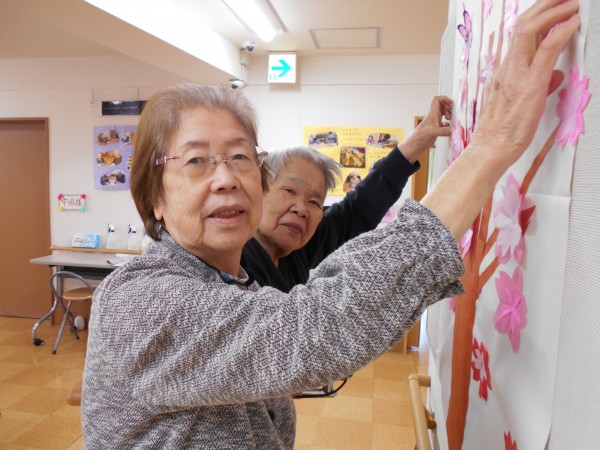皆様力を合わせて、フロアの桜を満開にしました。
