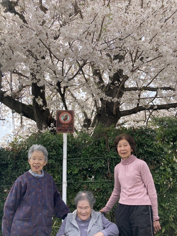 桜が咲き乱れる素敵な季節,散歩にはもってこいの気候になり,少人数ずつでお誘いしました。桜を見て笑顔になり,女性3人でおしゃべりに華が咲きました。