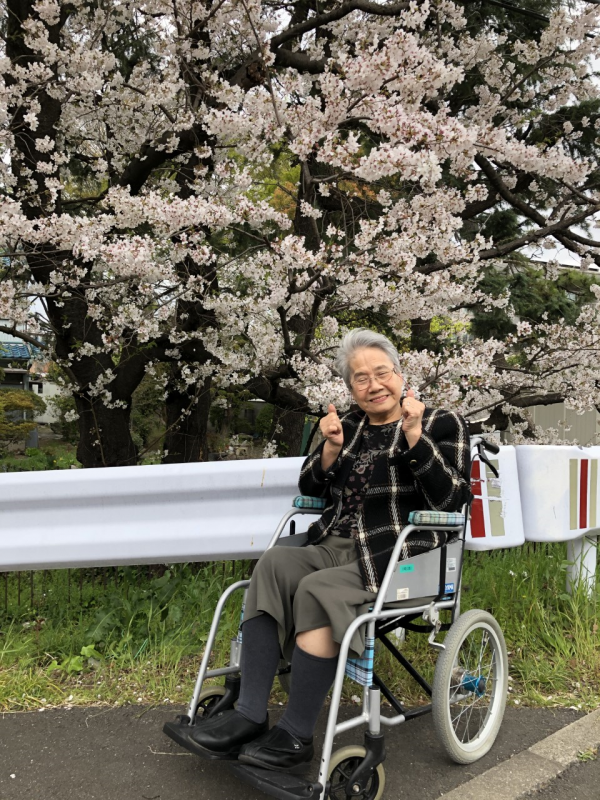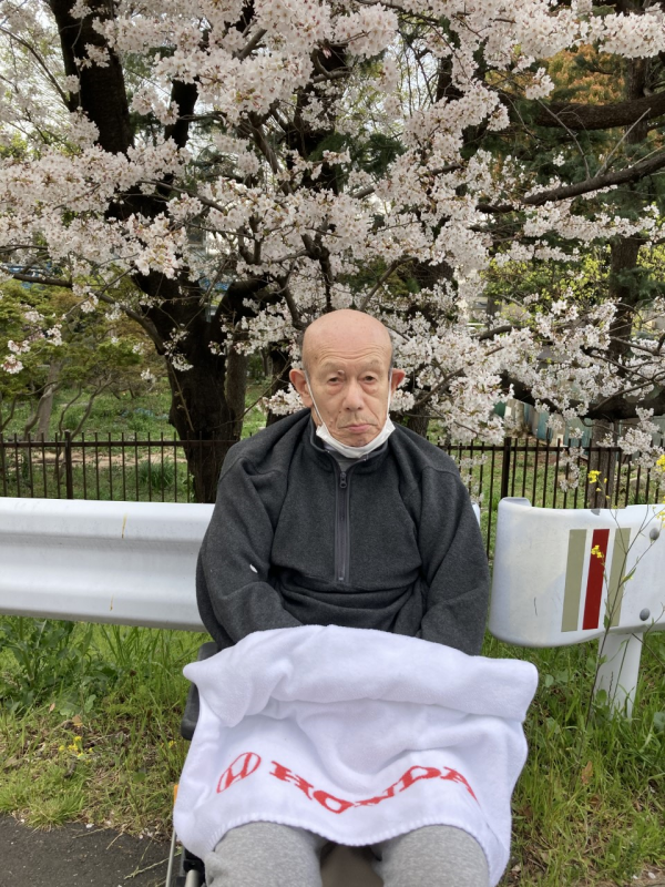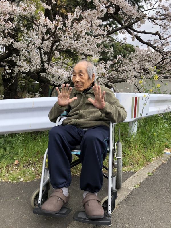 今日もそれぞれの桜の楽しみ方をしています。のんびりと歩いて、座ってにっこり! ときにはおどけて!