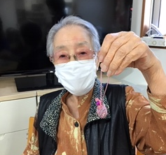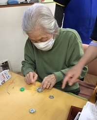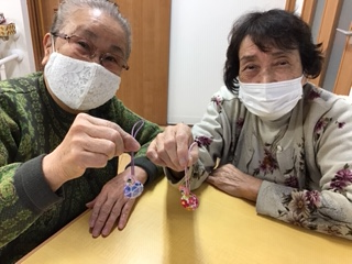 鈴とお花のチャームを選んでヒモを通して完成‼