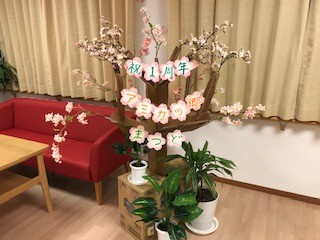 遠くから見たら、「あぁ・・外へ行けない分、誰かが館内に桜の木を飾ってくれたのか。」と思いました。