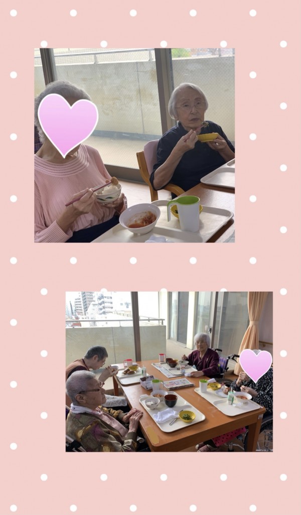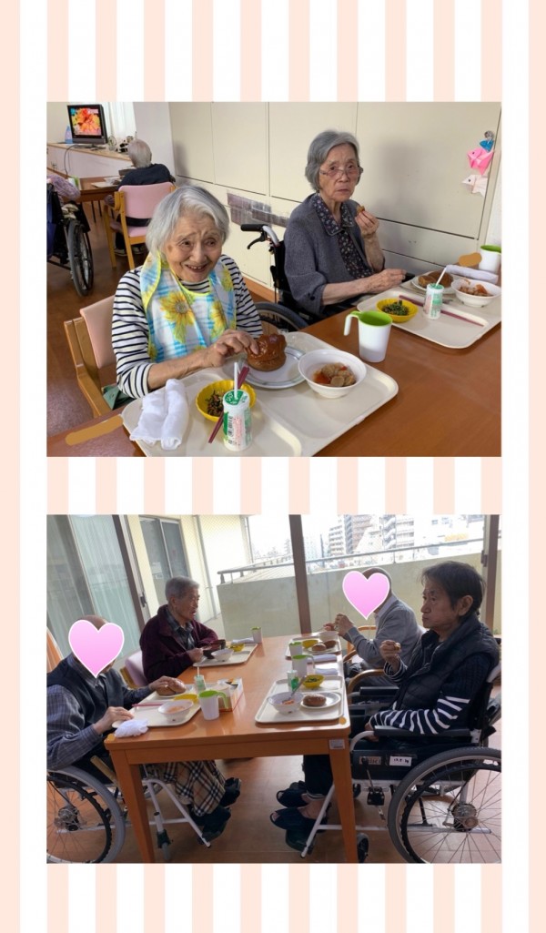 今日の、朝食時の入居者様を少しだけ、お届け致します。