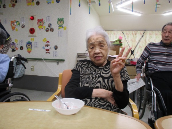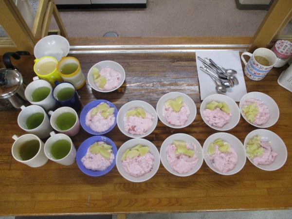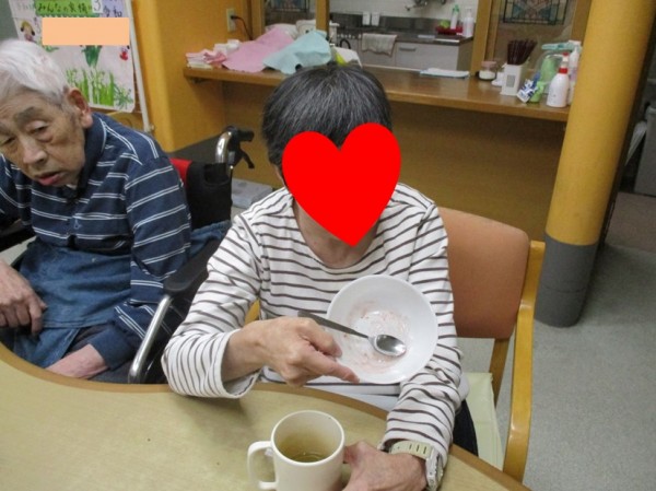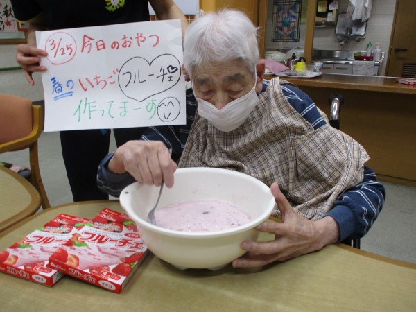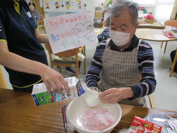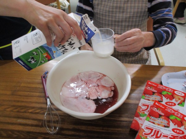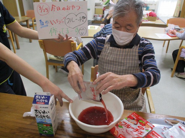 男性利用者様達の「感謝の気持ち」分、いつもより甘いフルーチェでした…