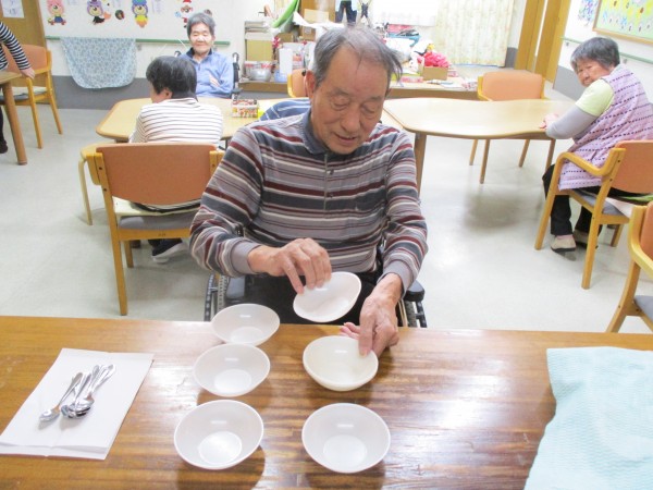 こちらの男性利用者様は配膳の準備です!