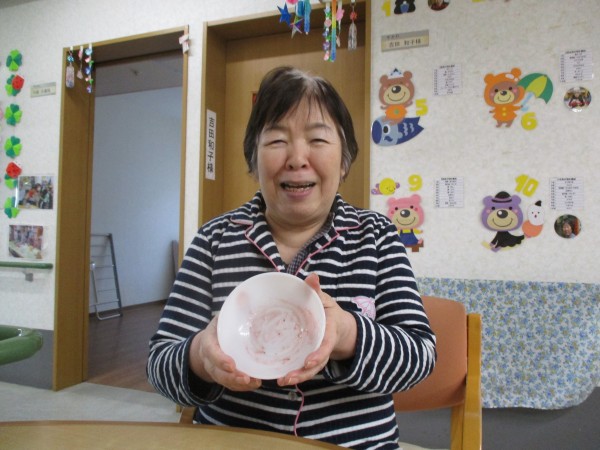男性利用者様達が、日頃の感謝の気持ちを込めて作ってくれたフルーチェは