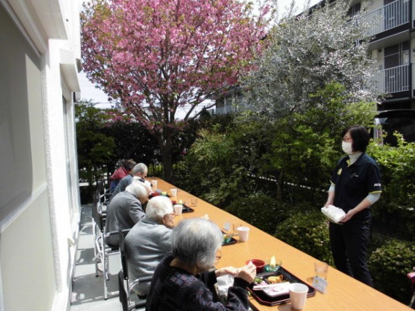 今年は施設の庭で「お花見弁当」になりましたが・・・