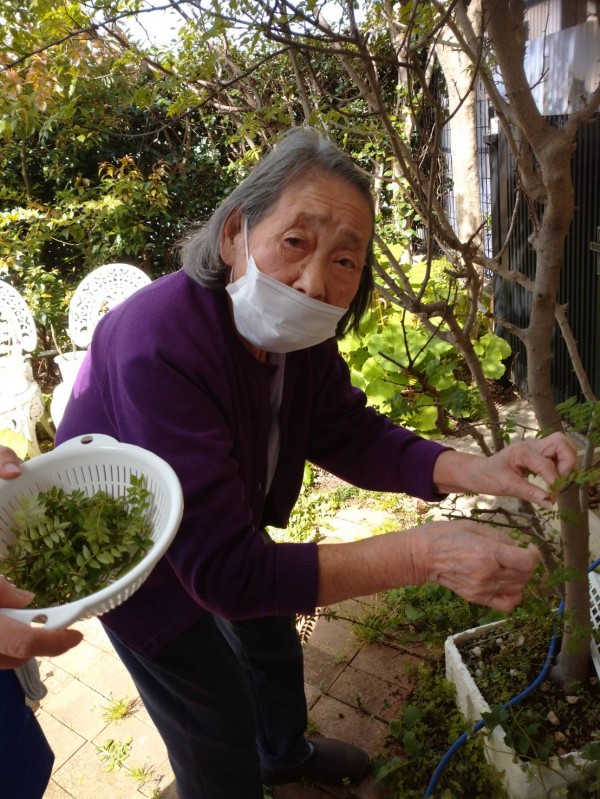 お庭の蕗&山椒の新芽を収穫してくださいました。