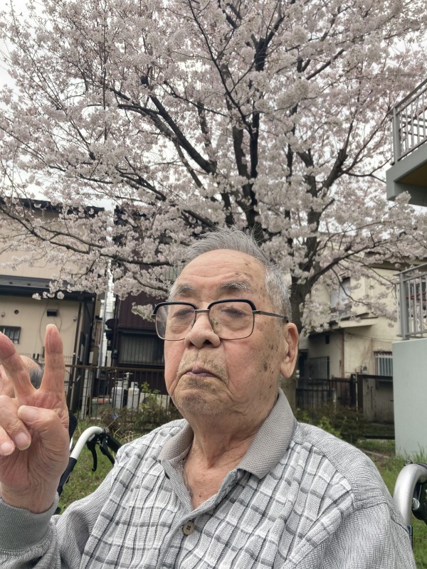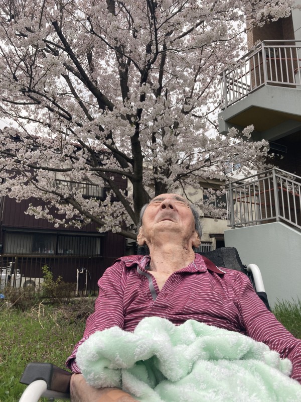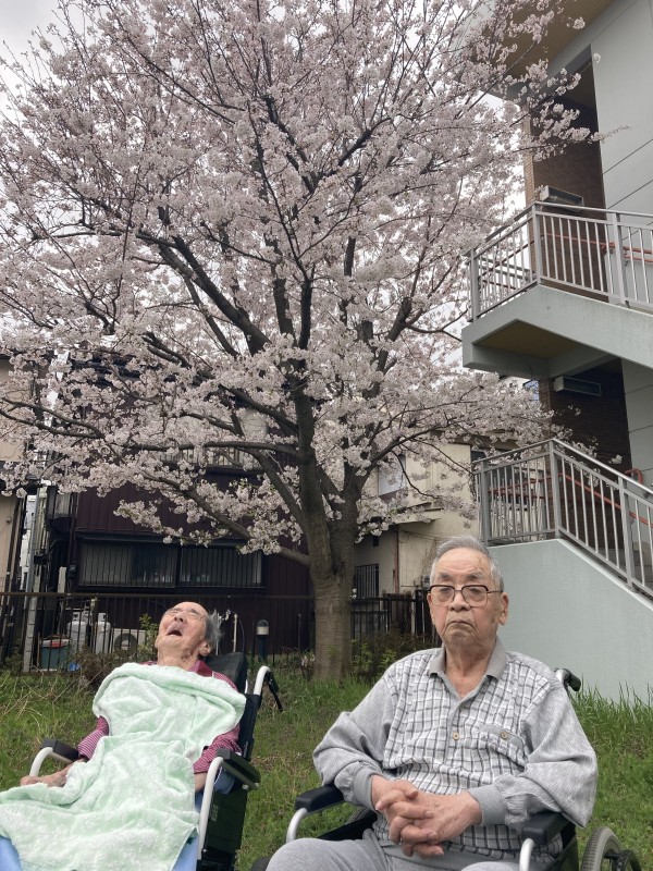 桜が咲いている間、数名のご利用者様を中庭へお連れしているのですが、