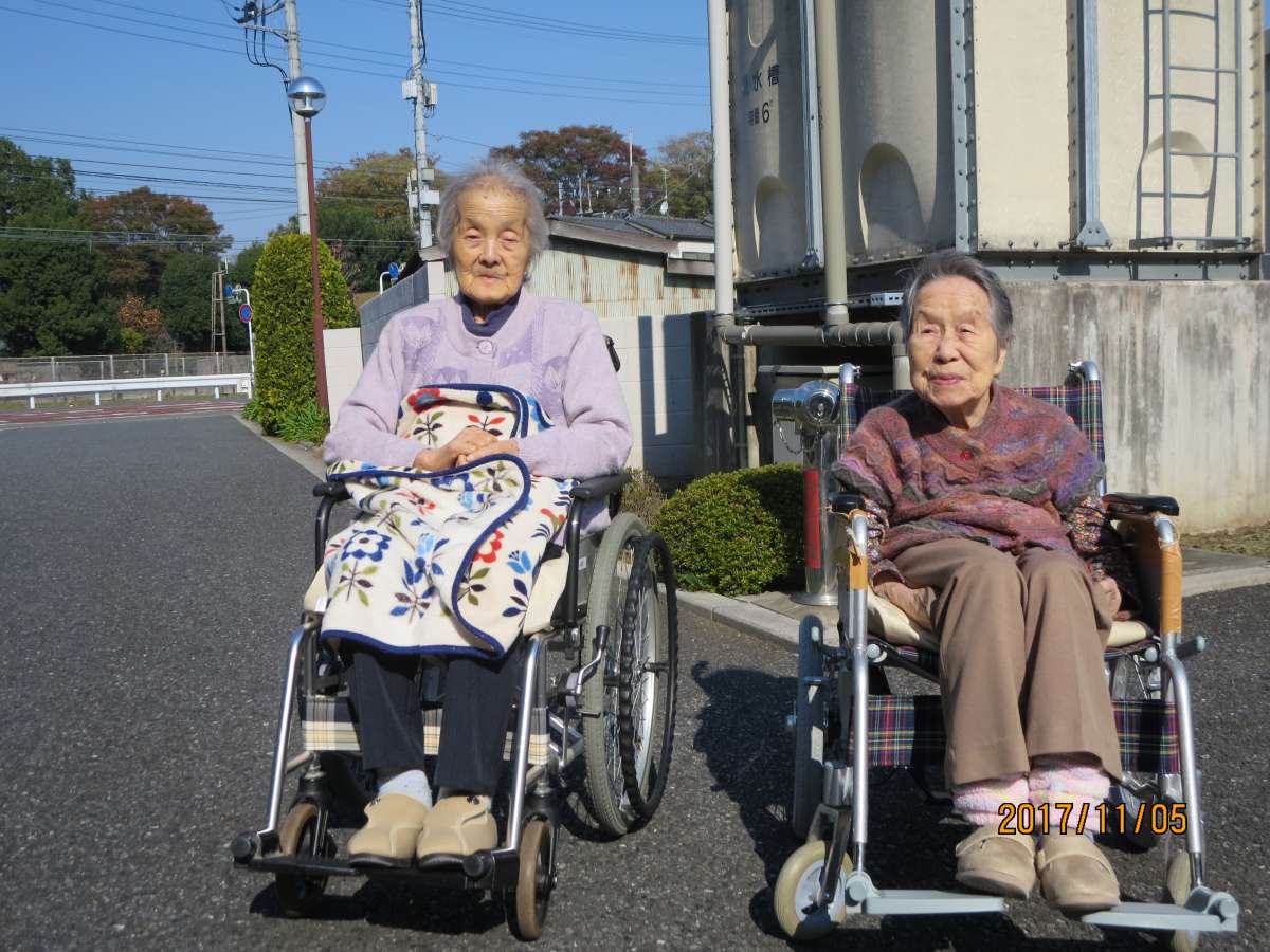 ご利用者さまと一緒に日光浴しました。