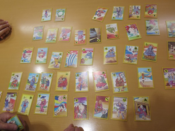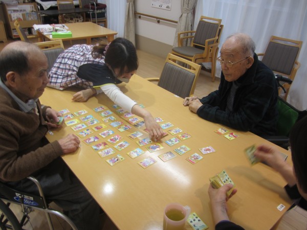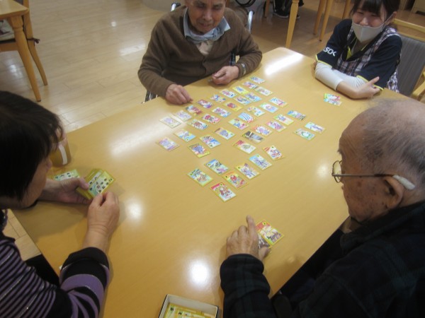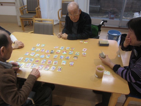 御利用者様のN様がかるたを読み上げて、御利用者様や職員で