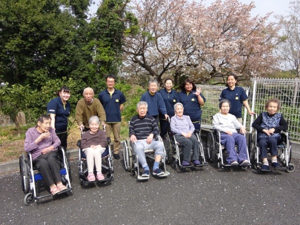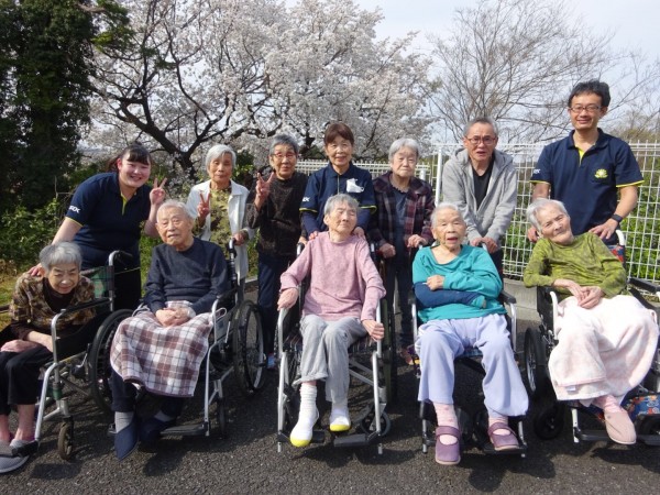 グループホームみんなの家・横浜今宿の介護ブログ 『桜をバックに集合写真』