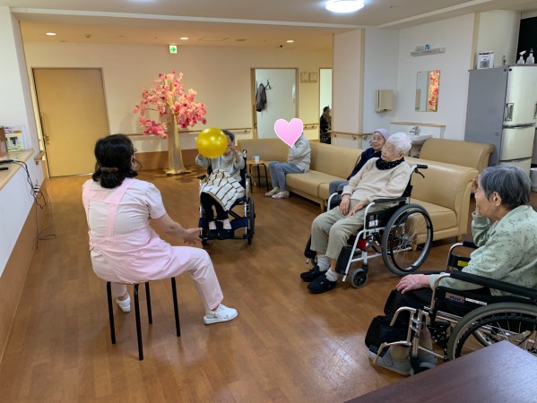 入居者様とボール投げ。